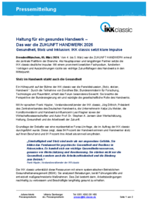 Dresden/München, 5. März 2026 - Vom 4. bis 5. März war die ZUKUNFT HANDWERK erneut die zentrale Plattform der Branche. Als Hauptsponsor und langjähriger Partner setzte die IKK classic deutliche Impulse: Mit einem prominent besetzten Fachpodium, fundierten Vorträgen und Auszeichnungen rückte sie wichtige Zukunftsfragen des Handwerks in den Mittelpunkt.