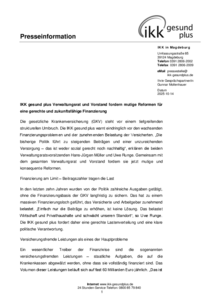 Neben der Finanzierung fordert die IKK gesund plus auch mehr Effizienz in der Verwaltung und im Leistungskatalog der GKV. „Wir brauchen Mechanismen, um veraltete oder unwirksame Leistungen zu streichen und so die Beitragszahler zu entlasten“, betont Uwe Deh. Gleichzeitig müsse den Krankenkassen mehr Handlungsspielraum eingeräumt werden, um wirtschaftlich und im Sinne der Versicherten agieren zu können.
