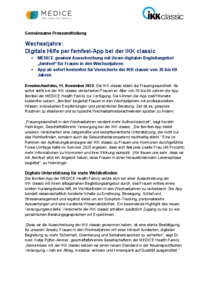 Dresden/Iserlohn, 11. November 2025 - Die IKK classic stärkt die Frauengesundheit: Ab sofort steht bei der IKK classic versicherten Frauen im Alter von 35 bis 69 Jahren die App femfeel der MEDICE Health Family zur Verfügung. Sie können die App zwölf Monate kostenfrei nutzen. „femfeel“ begleitet Frauen in den Wechseljahren mit professionellem Wissen, individuellen Empfehlungen und persönlicher Beratung. Ziel ist es, gesunde Routinen zu etablieren und so typische Wechseljahresbeschwerden spürbar zu lindern.
